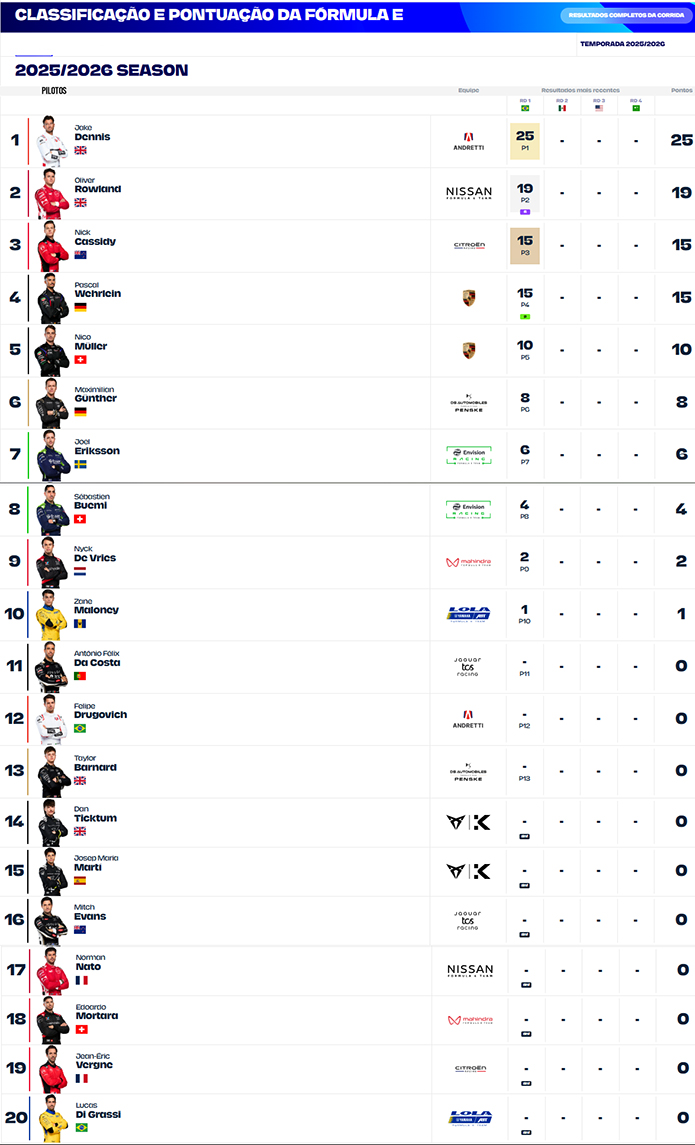 ABB FIA FORMULA E WORLD CHAMPIONSHIP – Dennis Dennis vence abertura da Temporada 225/26 {Andretti FEABB FIA} em São Paulo