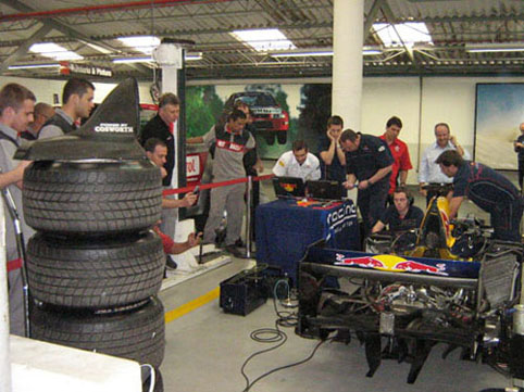 …e aquela acelerada da Red Bull quando subiu do centro de sampa pela 23 de Maio para o Ibirapuera? Detalhes de bastidores, enviados pelo Eric. Na primeira foto,Dr. ESR (de blaiser bege) e o Guiga de camisa vermelho e preto. O Setup da barata, antes de sair, foi feito na Mitsubishi!!!!