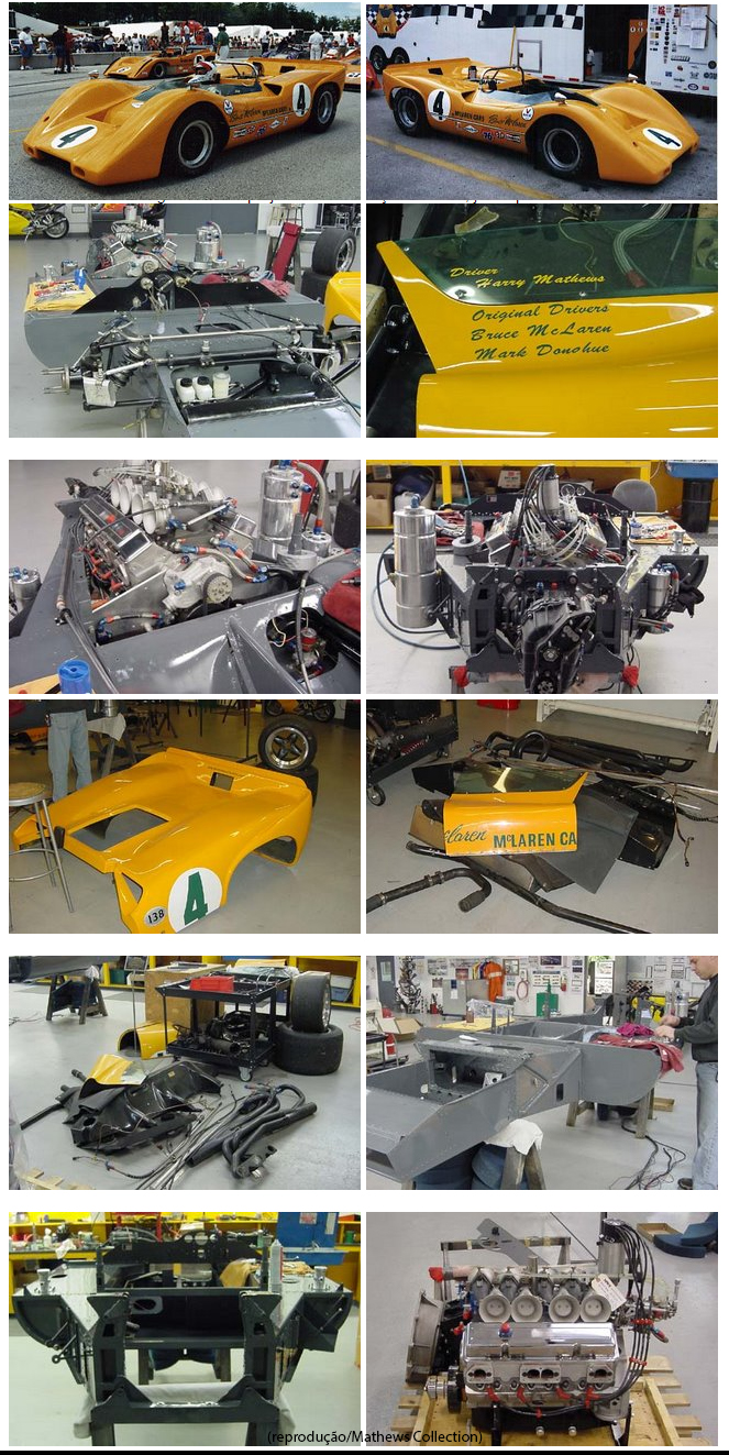 Este carro pertenceu a Bruce McLaren, com o qual competiu em 1967 na Can-Am Championship. Motorzão V8 GM, 6080 cc, 580 hp, câmbio Hewland LG600. Imagens do seu projeto de restauração e o final, já em pista…