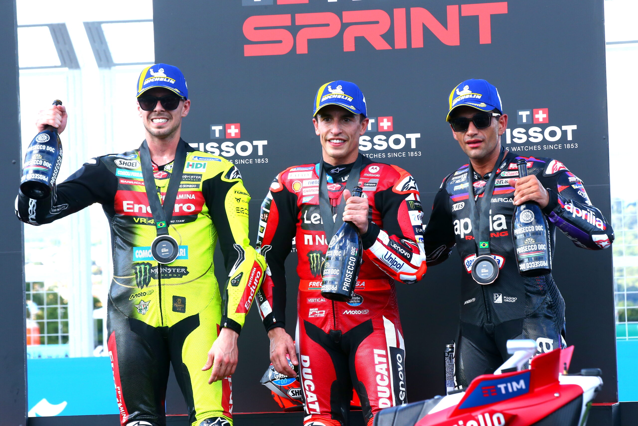 Márquez, da equipe Ducati Lenovo Team, somou 12 pontos ao vencer a corrida de apenas 15 voltas. Somente os nove primeiros colocados obtêm pontuação na prova sprint, que começou com atraso devido a uma falha no asfalto causada pelas chuvas ao longo da semana. O italiano Fabio Di Giannantonio (Pertamina Enduro VR46 Racing Team) e o espanhol Jorge Martín (Aprilia Racing Team) completaram o pódio.