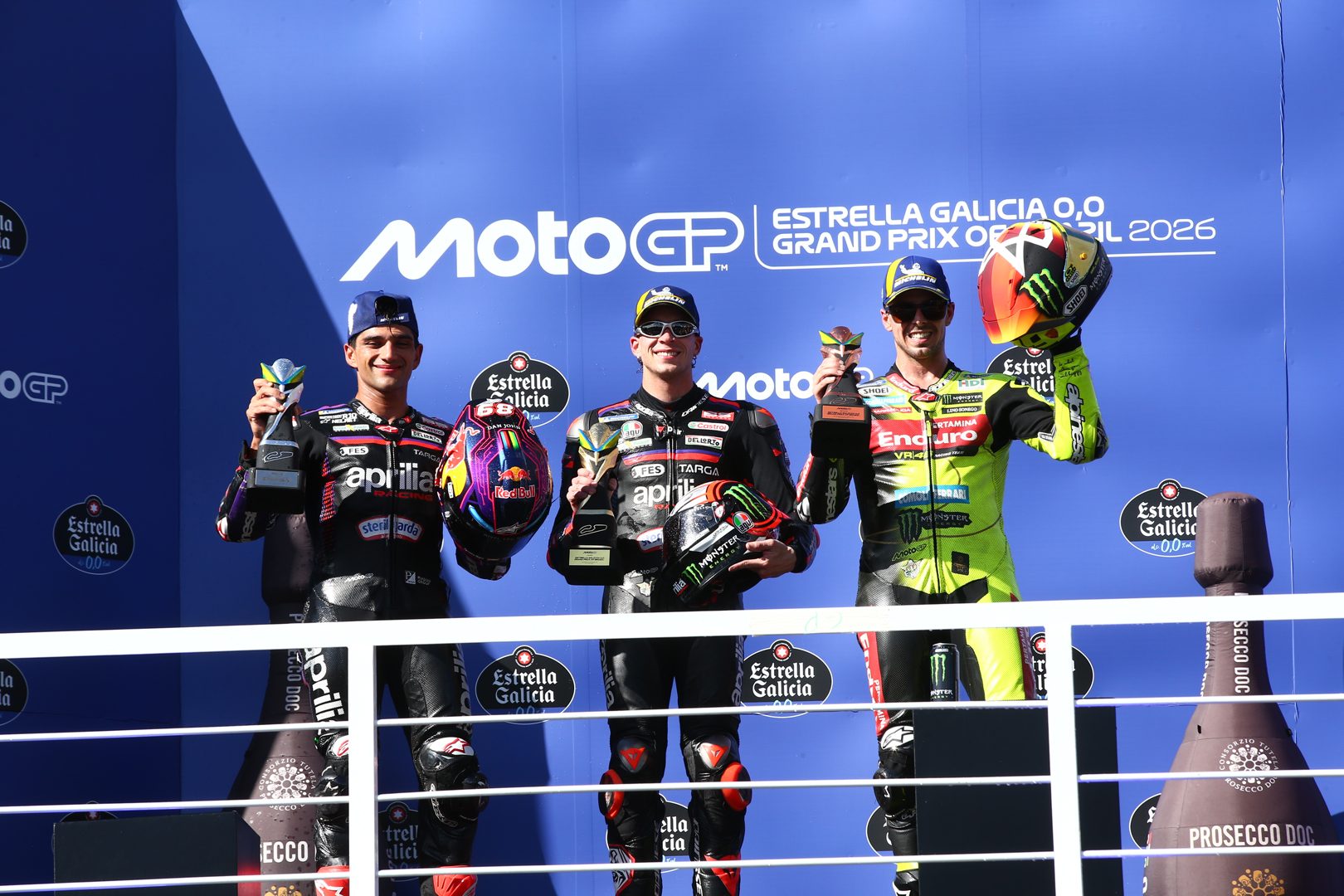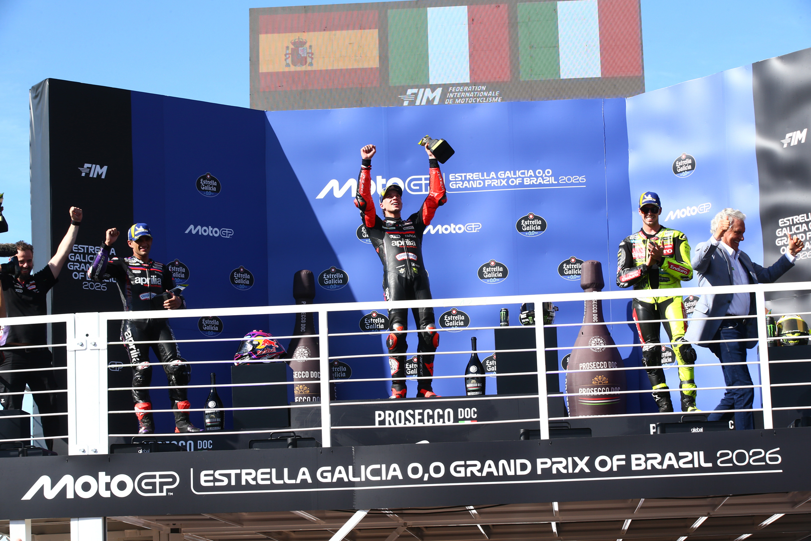 O italiano Marco Bezzecchi foi o grande vencedor do MotoGP Estrella Galicia 0,0 Grande Prêmio do Brasil 2026, disputado neste domingo (22/03), no Autódromo Internacional Ayrton Senna. O piloto fez dobradinha da Aprilia Racing Team com o espanhol Jorge Martín – o italiano Fabio Di Giannantonio (Pertamina Enduro VR46 Racing Team), completou o pódio. O brasileiro Diogo Moreira foi o 13º colocado neste retorno da principal categoria da motovelocidade mundial ao Brasil e ao Estado de Goiás.