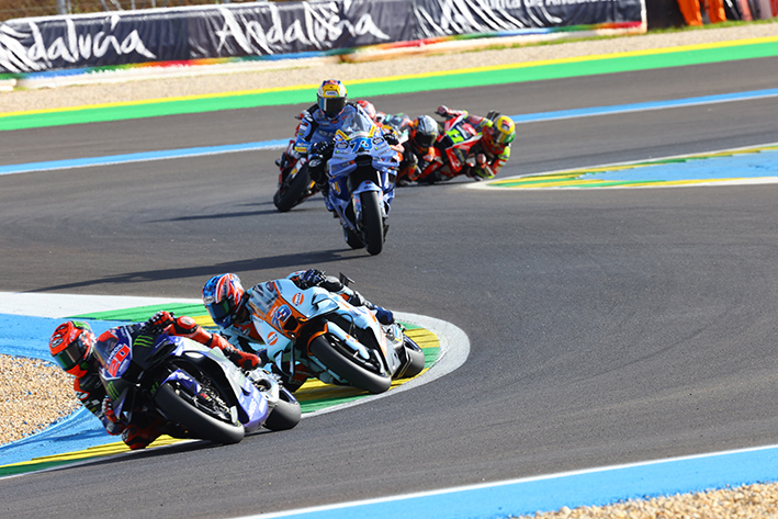 Faltando cinco voltas para o fim, Márquez e Di Giannantonio esquentaram a disputa pelo terceiro posto. O dono de sete títulos mundiais superou o italiano, mas não sustentou a colocação. E acabou fora do pódio.