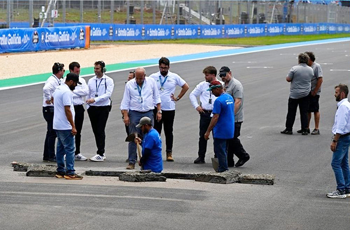 Durante a manhã, um incidente inesperado na reta principal ameaçou a continuidade da etapa do Mundial de Motovelocidade: a abertura de uma cratera no asfalto, exatamente no ponto de maior aceleração do circuito.