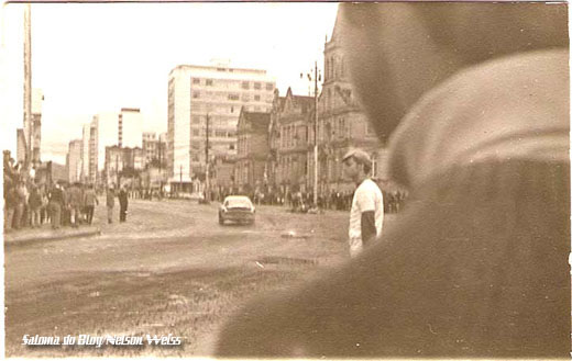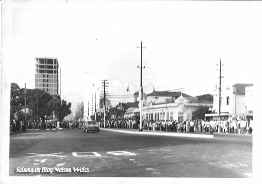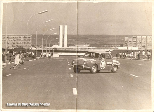 Quando era realizada a prova dos mil quilômetros de Brasília, eu ainda menino, nos meus 13, 14 anos, a largada era realizada mais ou menos onde o gordininho está fazendo a tomada de curva, mas só que eles largaram no sentido contrário a este, ou seja, descendo a rua em direção ao bacião da rodoviária.