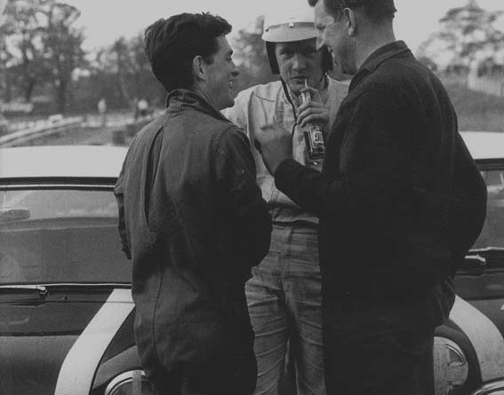Tyrrel (a direita), John Fitzpatrick (ao centro) e um mecânico antes de uma das etapas do campeonato