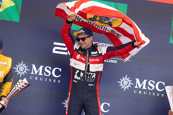 Porsche-Cup-2026-Velocitta, José Moura Neto em segundo com a bandeira do Amazonas Foto Rafael-Gagliano