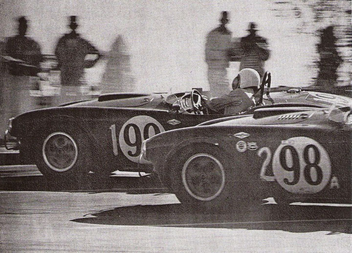 Dave MacDonald (Cobra #198) duelando com seu companheiro de equipe, Ken Miles no Cobra #298…